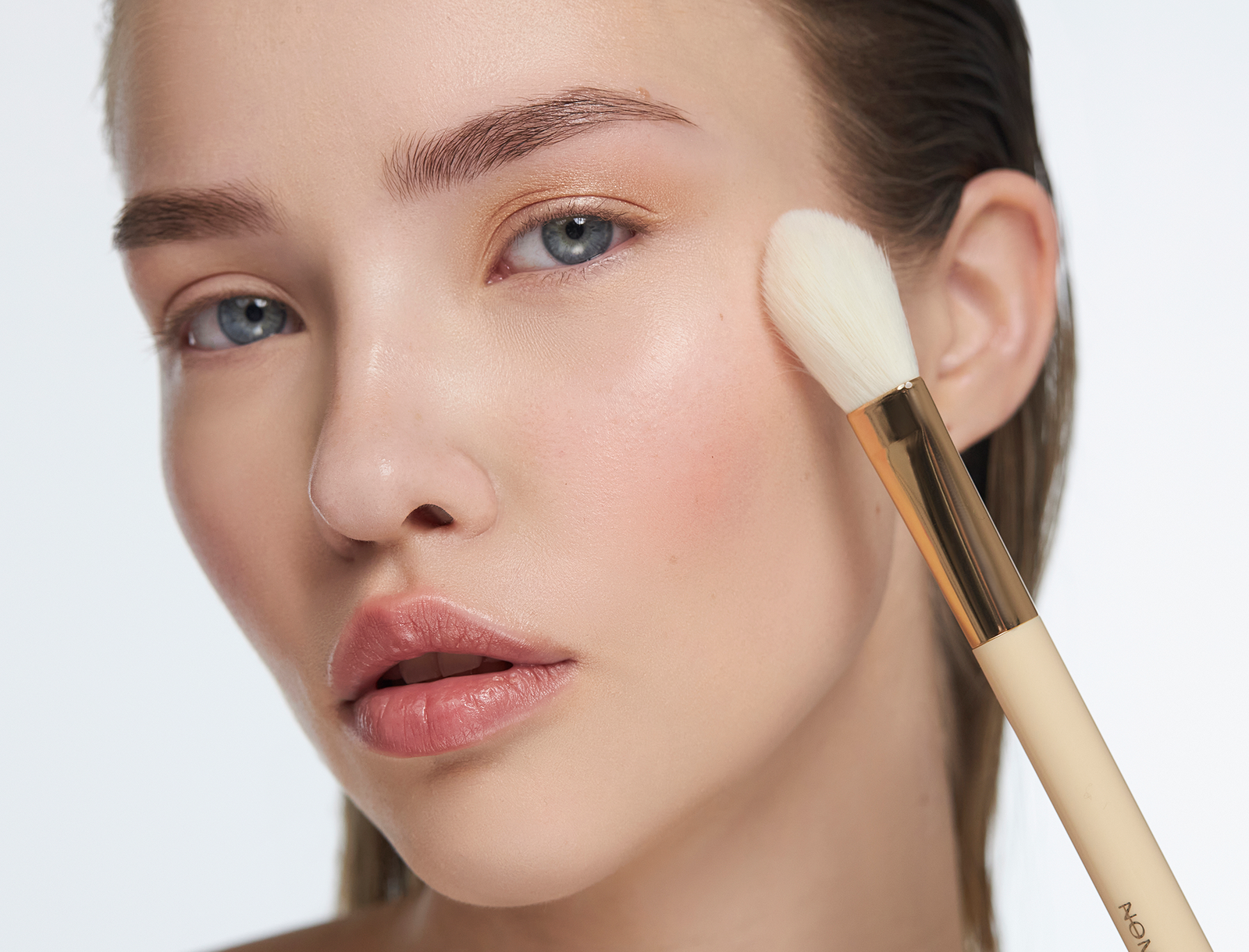 Use the side of the brush for soft sweeping motions across larger areas like the cheeks and forehead. Use the tapered tip for precise placement and blending on high points like cheekbones, the bridge of the nose, or cupid’s bow.
