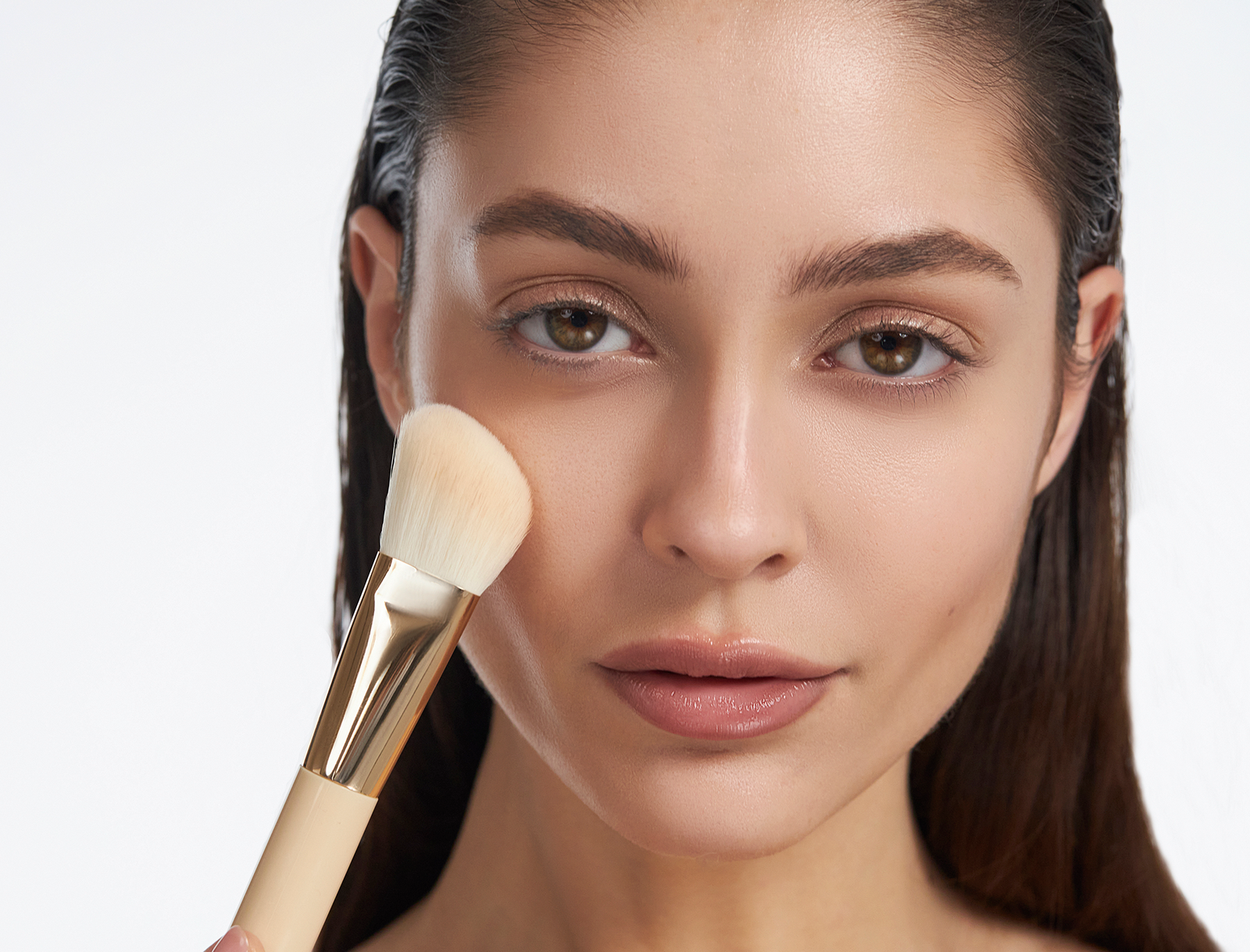 NOMAKEUP has created the perfect tool for dry-texture sculpting: the Precise Contour Brush for blush and highlighter.